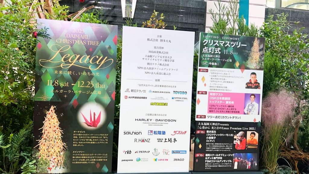 福岡天神へお出かけの際は、ぜひ会場へお立ち寄りいただき、幻想的なツリーの輝きや展示パネルを通して、生物多様性の大切さや自然と共生する未来について考えるきっかけにしていただければ幸いです。