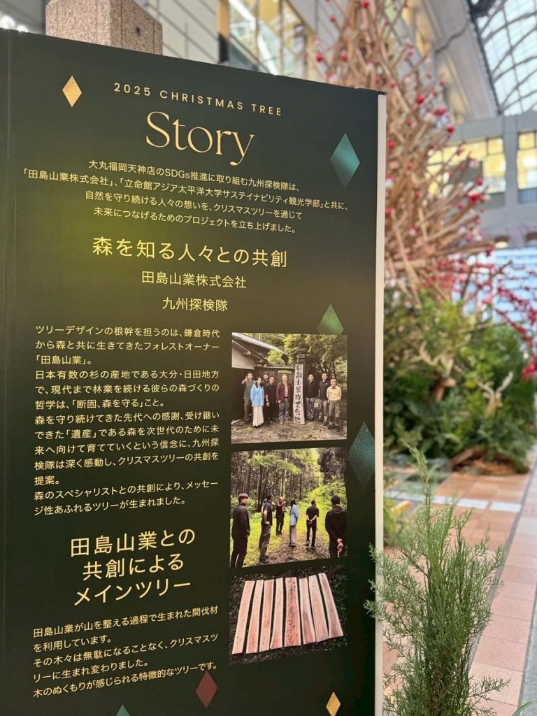 11月8日より、大丸福岡天神店で開催されている、「2025 DAIMARU CHRISTMAS TREE Legacy 〜永遠に続く、いのちの光〜」のメインのクリスマスツリーに、弊社の杉が使われることとなり、初日に開催された「クリスマスツリー点灯式」にて、弊社 代表取締役が登壇いたしました。