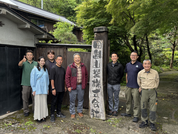 メインツリーの間伐材提供にあたり、事前に大丸福岡天神店のSDGs推進に取り組む九州体験隊の皆さんにおいでいただき、田島の森のご案内や意見交換も行いました。